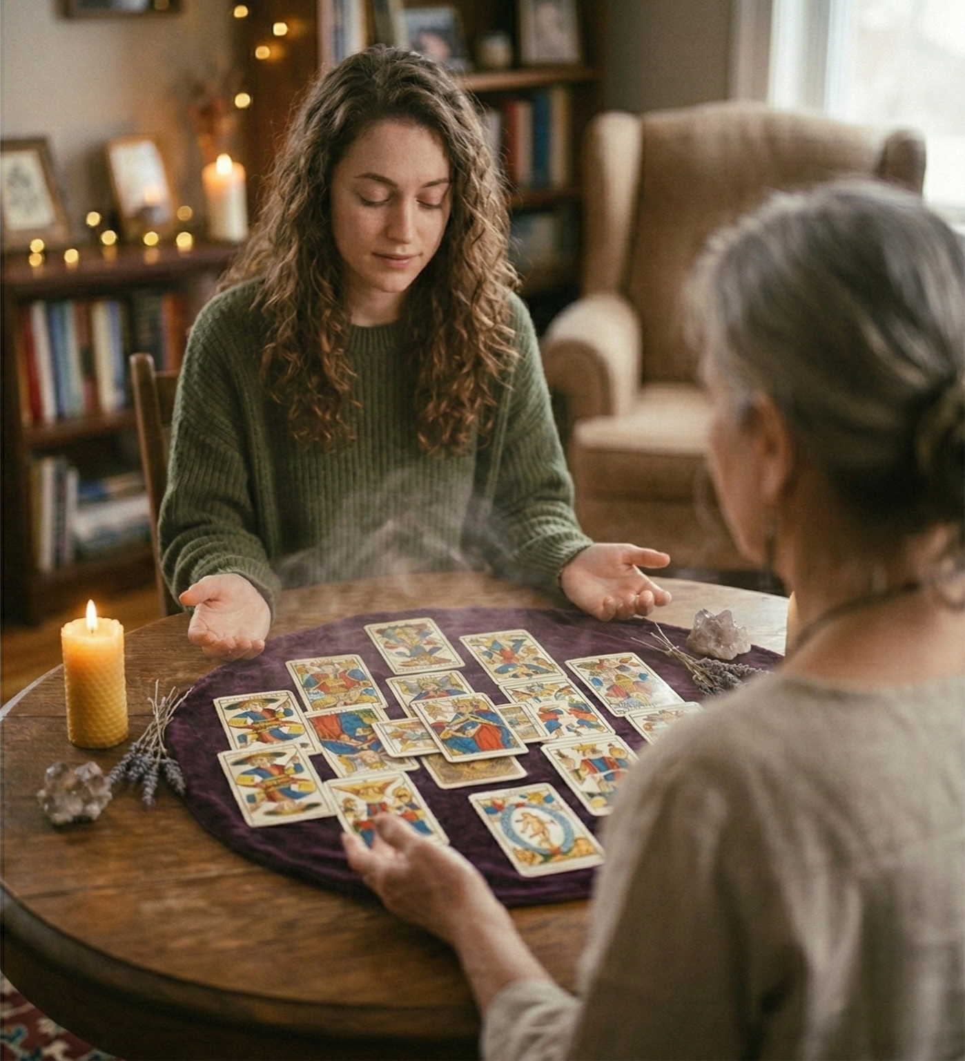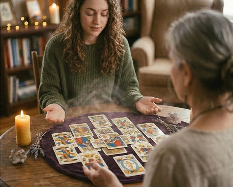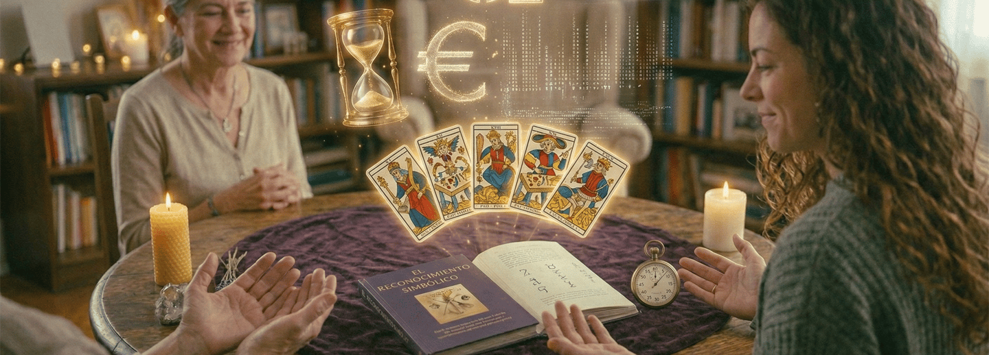 Una hora de lectura simbólica, tarot intuitivo y canalización.
